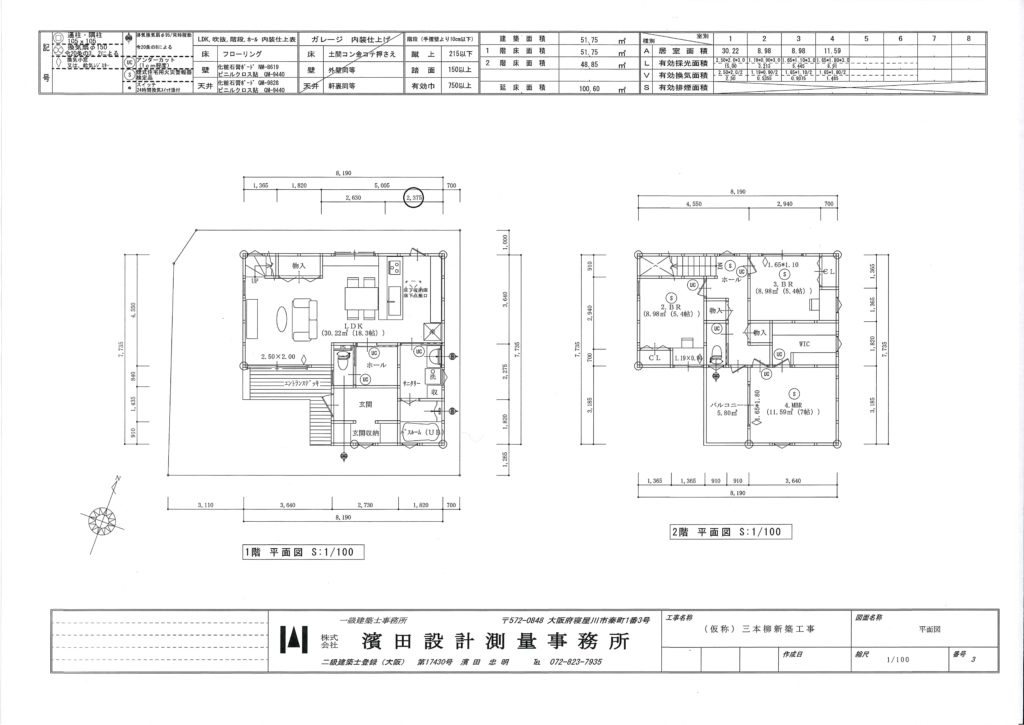 115.76㎡(35.01坪) 建物:1F 51.75㎡ (15.65坪) 2F 48.85㎡ (14.77坪)